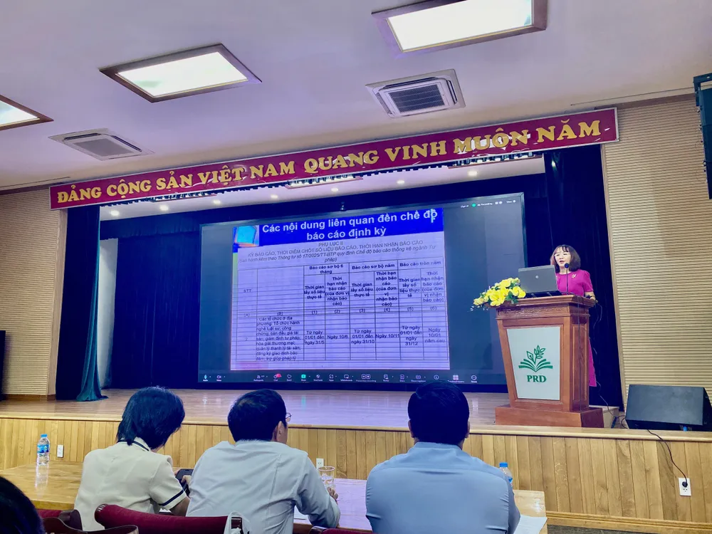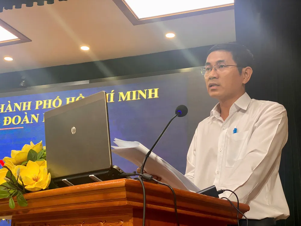 Ông Nguyễn Đức Thông (Phó Trưởng phòng Kiểm tra và Quản lý pháp chế Vi phạm hành chính, Sở tư pháp TP.HCM) trình bày tại hội nghị. Ảnh: YC