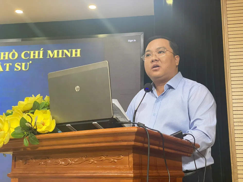 Ông Lê Quang Nghiệp (Phó trưởng phòng Tổ chức, Sở tư pháp TP.HCM) trình bày chuyên đề tại hội nghị. Ảnh: YC