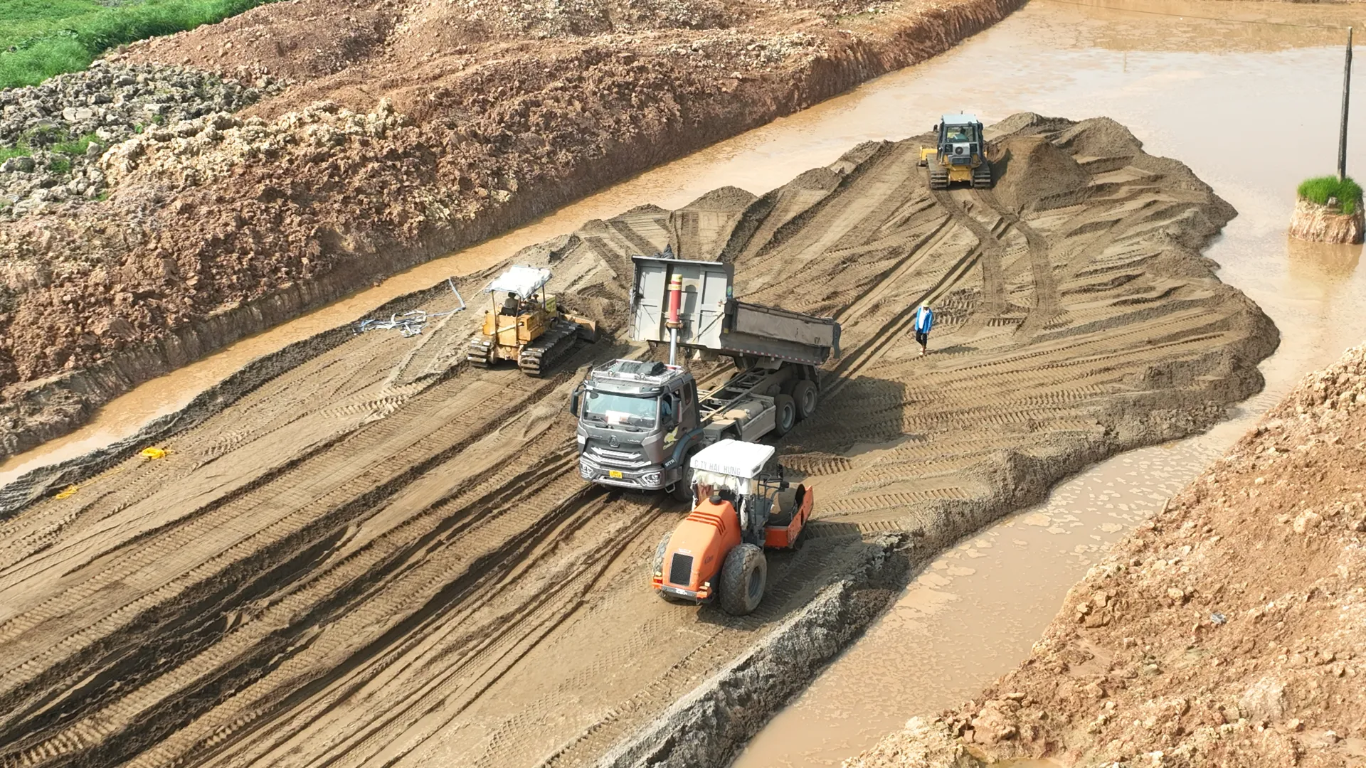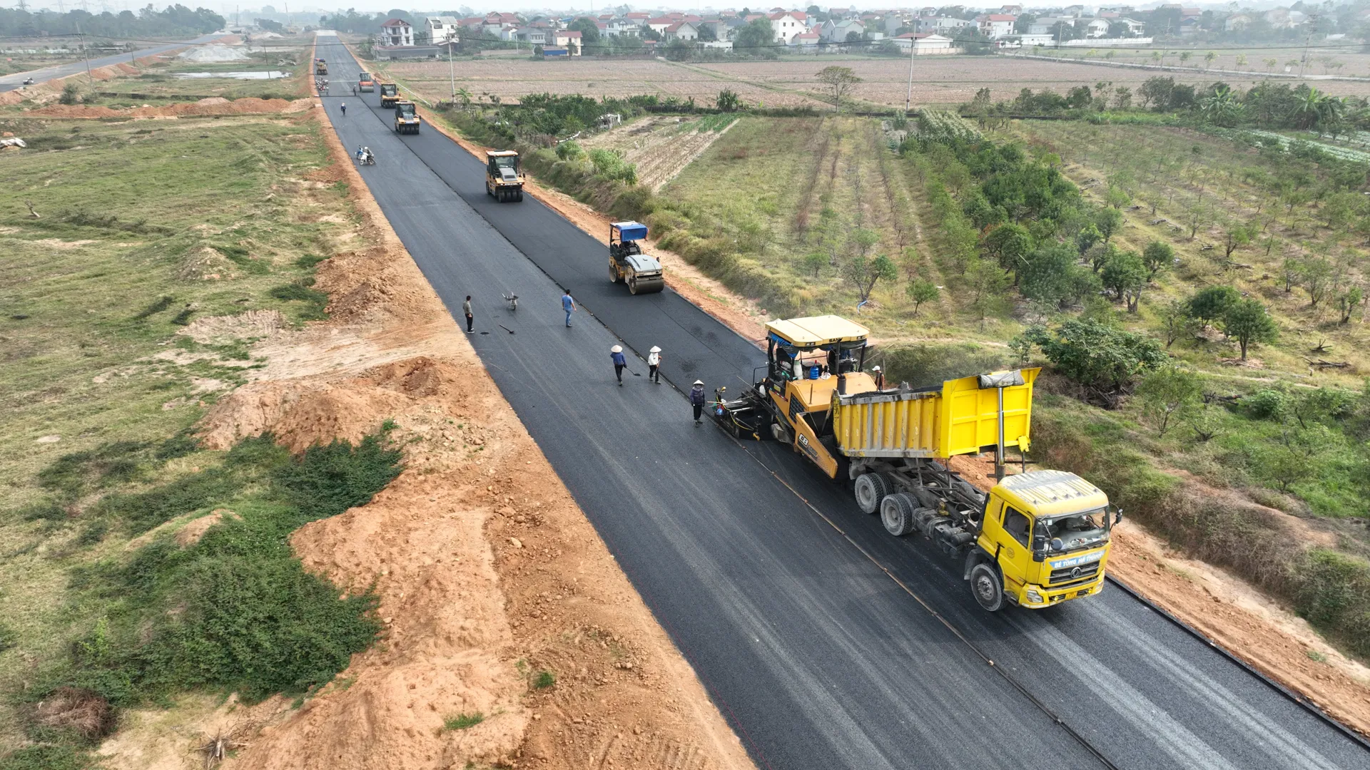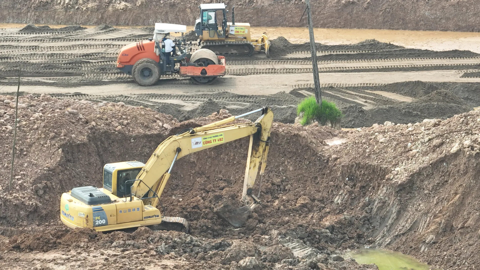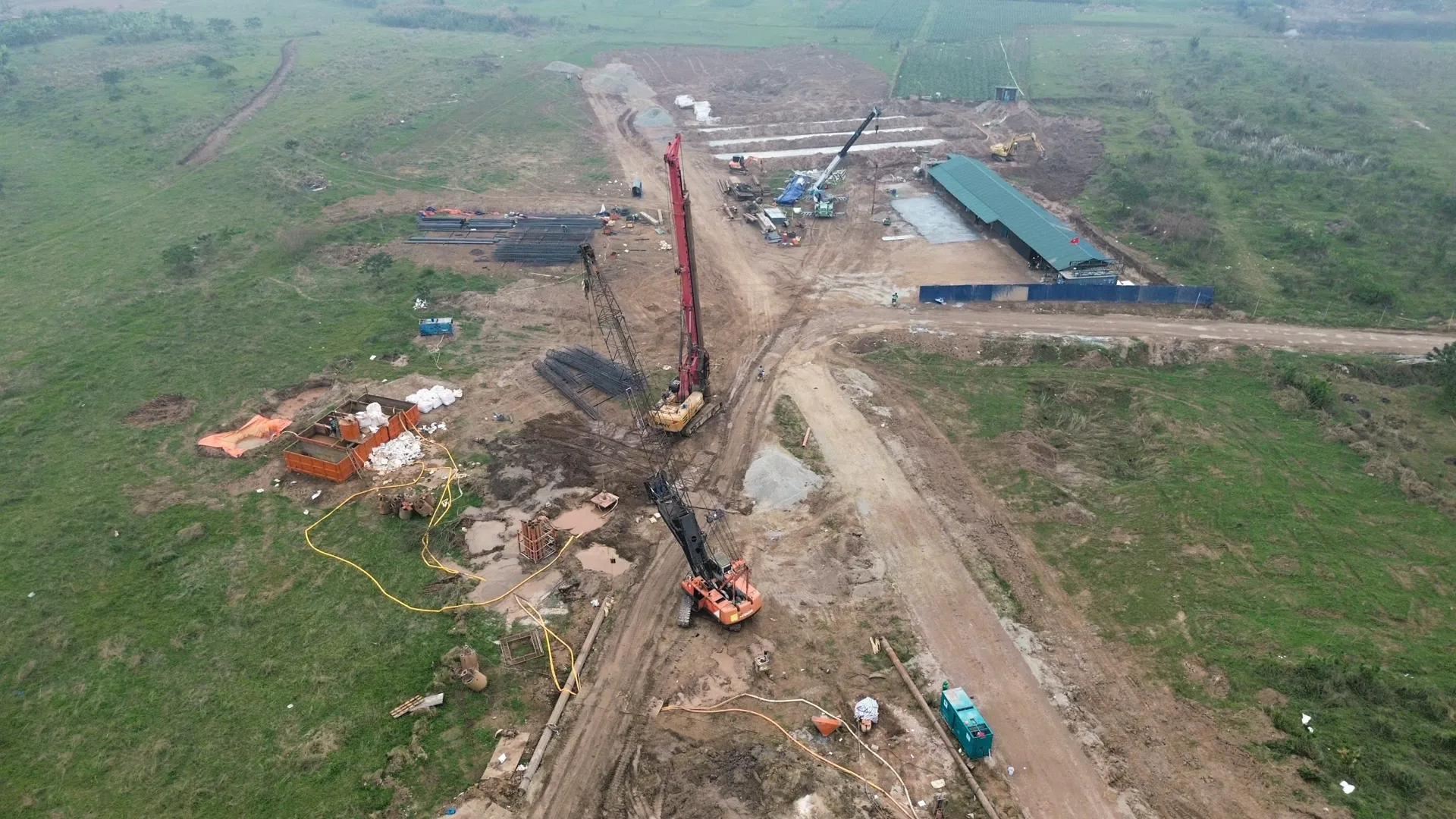 Công trường thi công Dự án đường Vành đai 4 - Vùng Thủ đô tại xã Quang Minh, Hà Nội