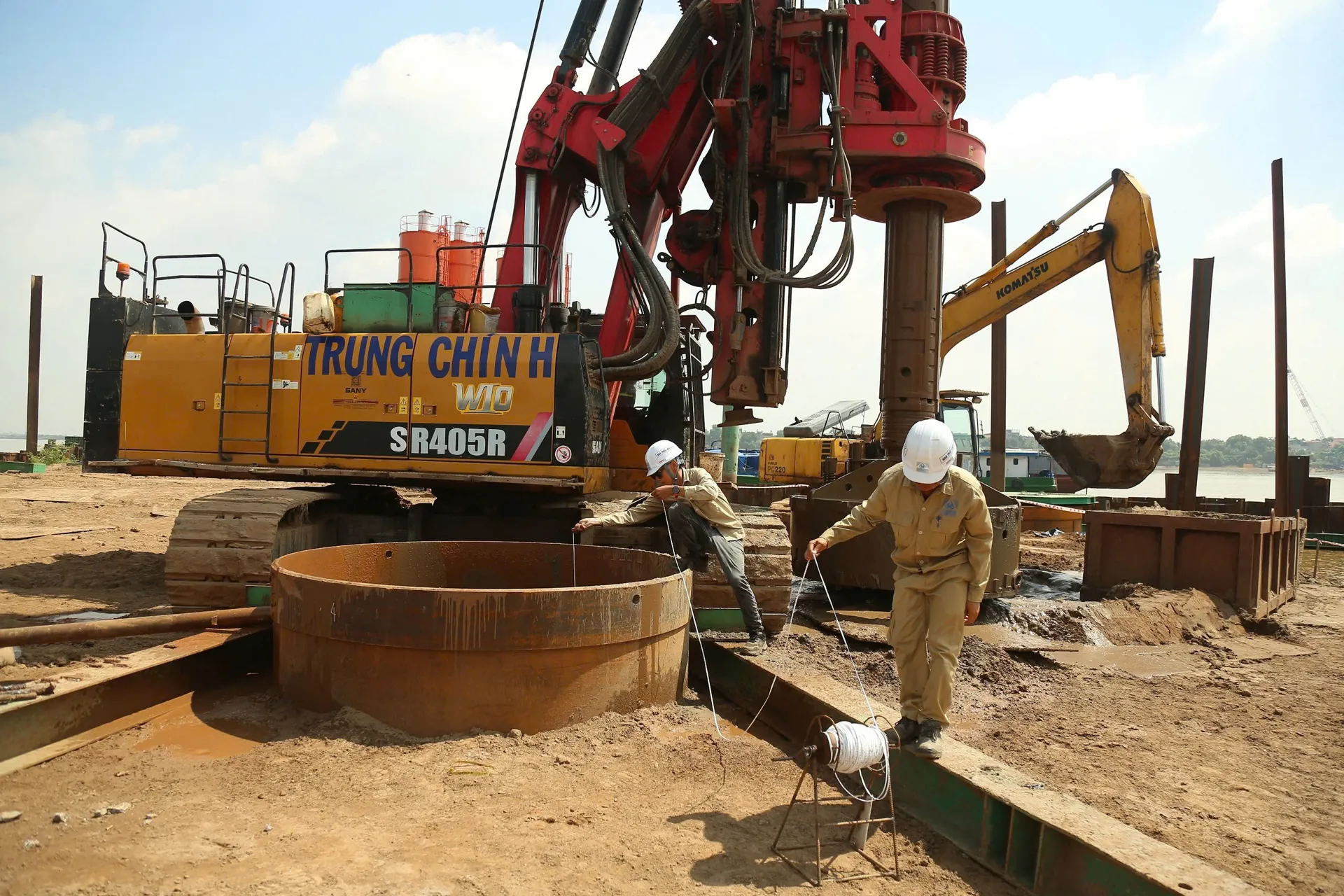 Khởi công từ tháng 5/2025, dự án cầu Tứ Liên vượt sông Hồng hiện đạt 85% sản lượng cọc khoan nhồi tại hai trụ tháp chính, dự kiến hoàn thành toàn bộ vào năm 2027.