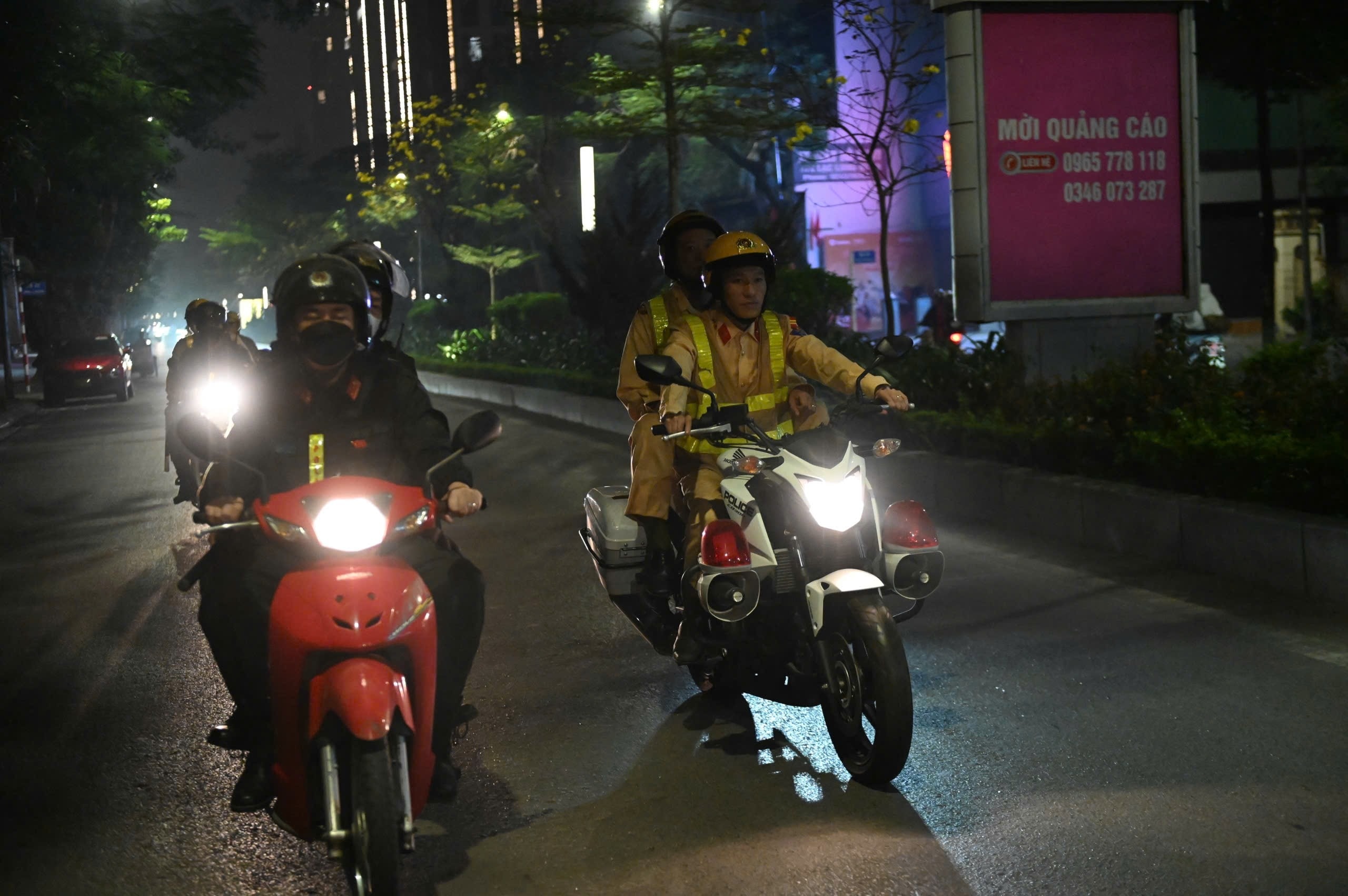 Lực lượng 141 Công an Thủ đô tuần tra, kiểm soát các tuyến phố đêm. Ảnh: PV