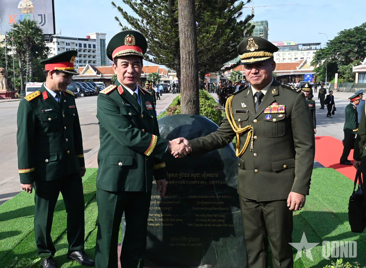 Đại tướng Phan Văn Giang và Đại tướng Tea Seiha đã cùng trồng cây hữu nghị và chứng kiến tuần tra chung của lực lượng bảo vệ biên giới hai nước.