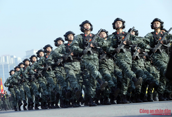 Khối nam sĩ quan Đặc nhiệm thuộc Bộ Tư lệnh Cảnh vệ duyệt đôi ngũ. “Đặc biệt tinh nhuệ, mưu trí, dũng cảm, sẵn sàng hy sinh, tuyệt đối trung thành”, Trung đoàn Đặc nhiệm luôn sẵn sàng nhận và hoàn thành xuất sắc nhiệm vụ, xứng danh “quả đấm thép” của lực lượng Cảnh vệ.