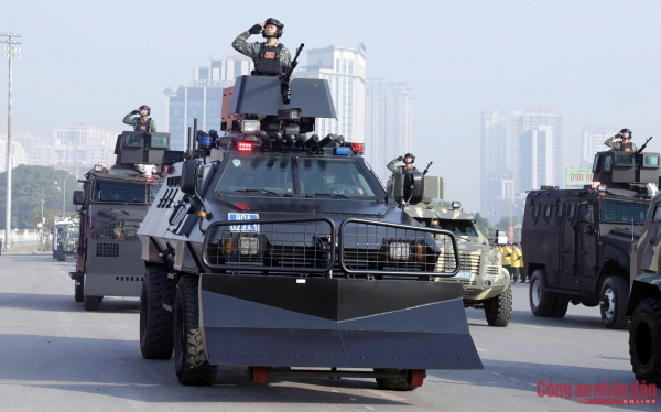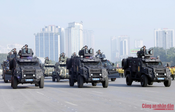 Tiếp theo đội hình là các khối xe tác chiến chống khủng bố của lực lượng Cảnh sát đặc nhiệm, khối xe đặc chủng bọc thép chống đạn, khối xe đặc chủng chống bạo loạn, khối xe chỉ huy tác chiến...