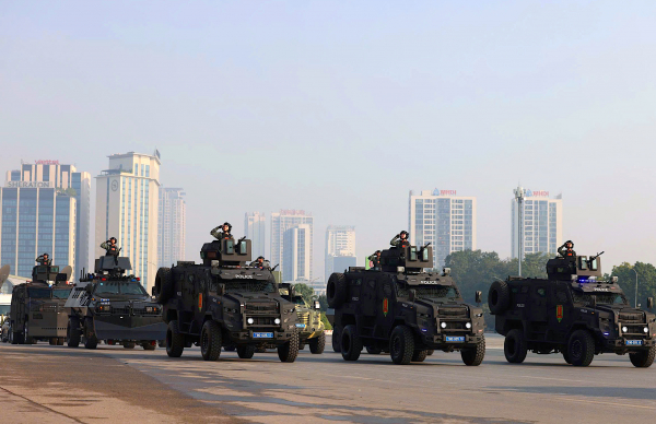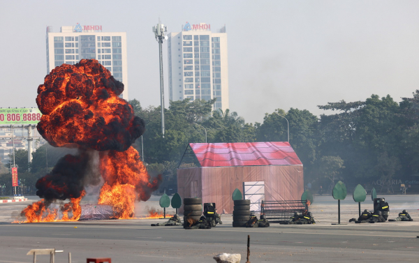 Lực lượng CSCĐ tham gia diễn tập xử lý tình huống tại lễ xuất quân, ngày 10/1.