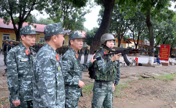 Đại tá Phạm Hữu Thinh, Phó Tư lệnh CSCĐ kiểm tra công tác huấn huyện, ứng trực tại Đoàn CSĐN số 1.