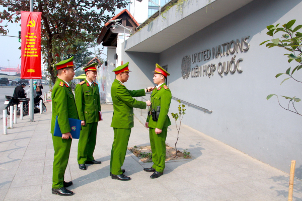Tại mục tiêu Đại sứ quán Australia, Thượng tá Đặng Đình Cường đã cùng tổ kiểm tra làm việc, trao đổi công tác với ông Vũ Kim Nguyên, phụ trách an ninh đại sứ quán về công tác phối hợp bảo đảm ANTT; đồng thời kiểm tra công tác ứng trực làm nhiệm vụ, quy trình dẫn đổi gác... Tại mục tiêu Trụ sở các tổ chức của Liên hợp quốc, Trung úy Lê Đức Thành Nam cùng đồng đội làm nhiệm vụ canh gác bảo vệ mục tiêu với tư thế, tác phong chuẩn chỉnh, thể hiện hình ảnh đẹp người chiến sĩ CSBV mục tiêu nói riêng và CBCS CAND nói chung trước thềm Đại hội Đảng.