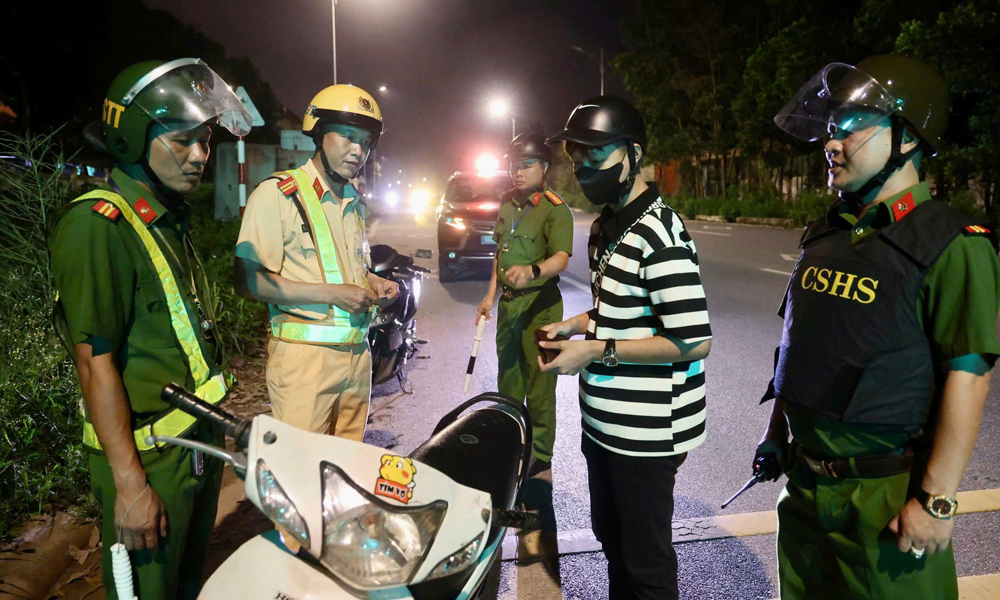 Cán bộ Phòng Cảnh sát hình sự phối hợp với các lực lượng trong một ca tuần tra đêm.