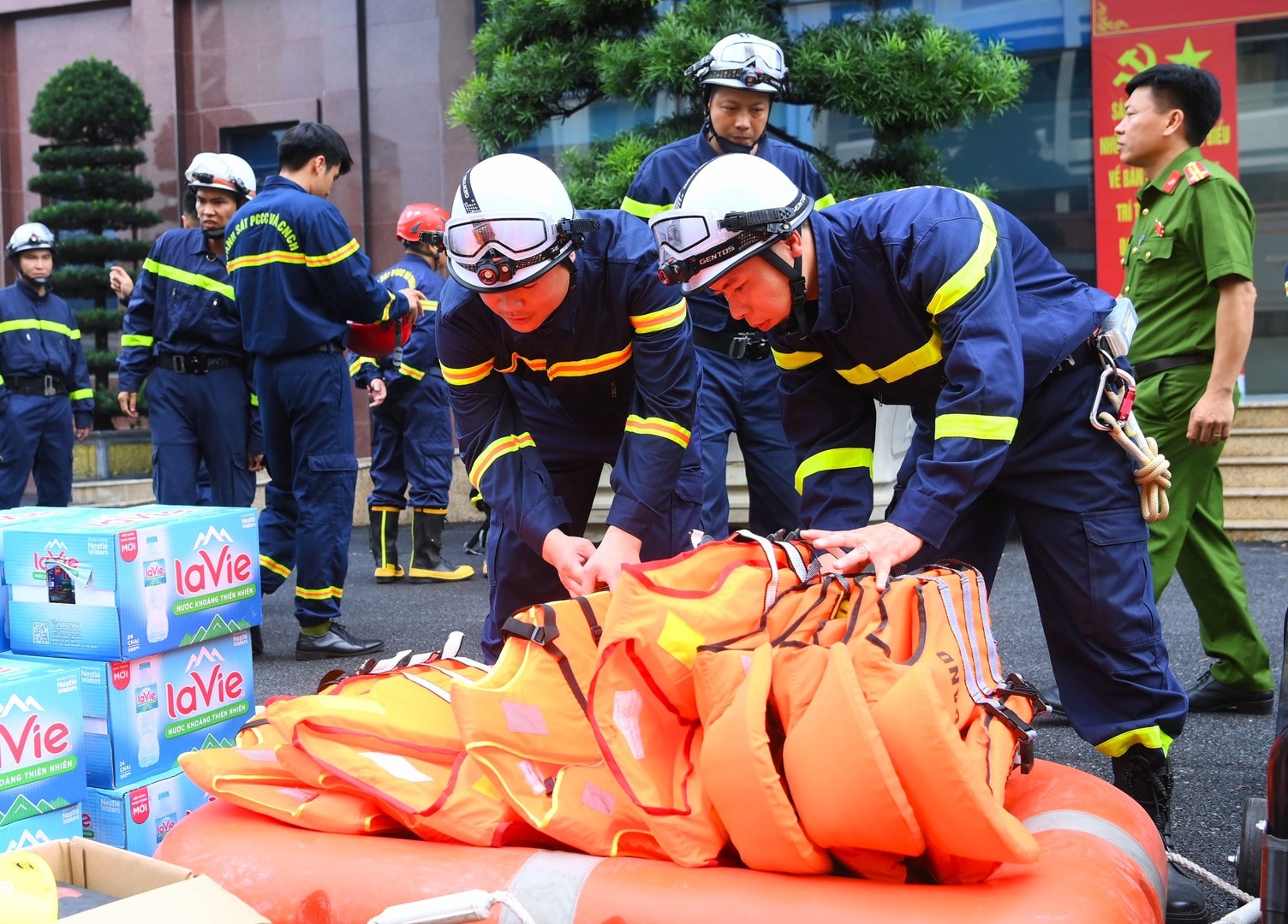 Ngay sau buổi Lễ, Đoàn công tác đã lên đường thực hiện nhiệm vụ cứu nạn, cứu hộ tại tỉnh Tuyên Quang.