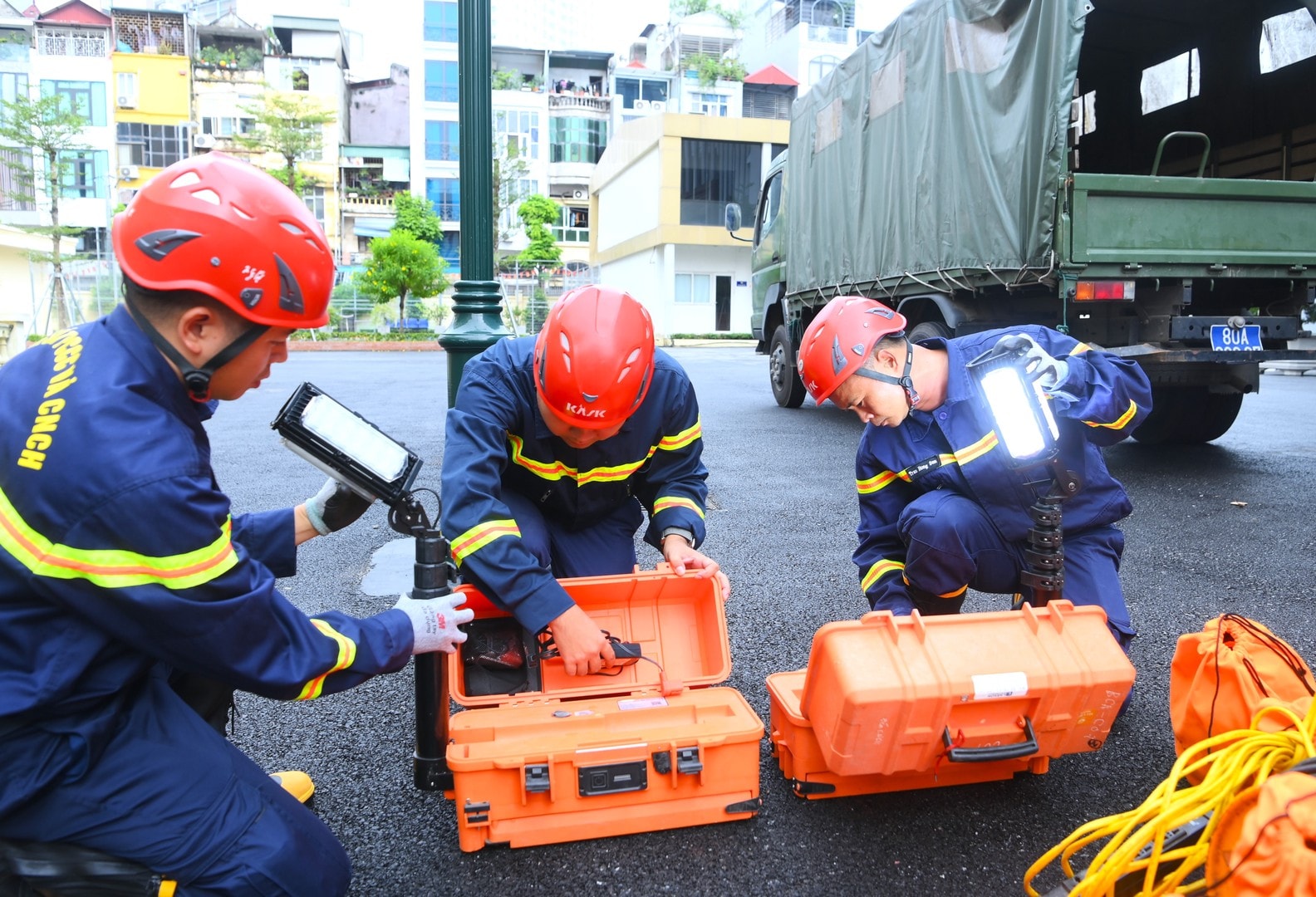 Thực hiện ý kiến chỉ đạo của Ủy viên Bộ Chính trị, Bộ trưởng Bộ Công an Đại tướng Lương Tam Quang về việc thành lập Đoàn công tác phối hợp với Công an tỉnh Tuyên Quang thực hiện các hoạt động cứu nạn, cứu hộ, Cục Cảnh sát phòng cháy, chữa cháy và cứu nạn, cứu hộ thành lập Đoàn công tác gồm cán bộ, chiến sỹ thuộc Cục và Phòng Cảnh sát phòng cháy, chữa cháy và cứu nạn, cứu hộ Công an thành phố Hà Nội lên đường thực hiện nhiệm vụ cứu nạn, cứu hộ tại tỉnh Tuyên Quang.