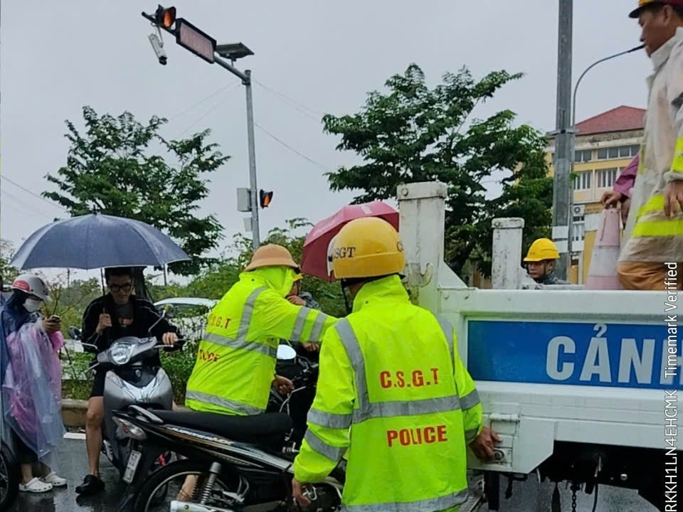 Tổ công tác Đội 2, Phòng CSGT Công an TP Huế nhanh chóng đưa hai mẹ con chị Hồ Hoàng Thi đến nơi an toàn