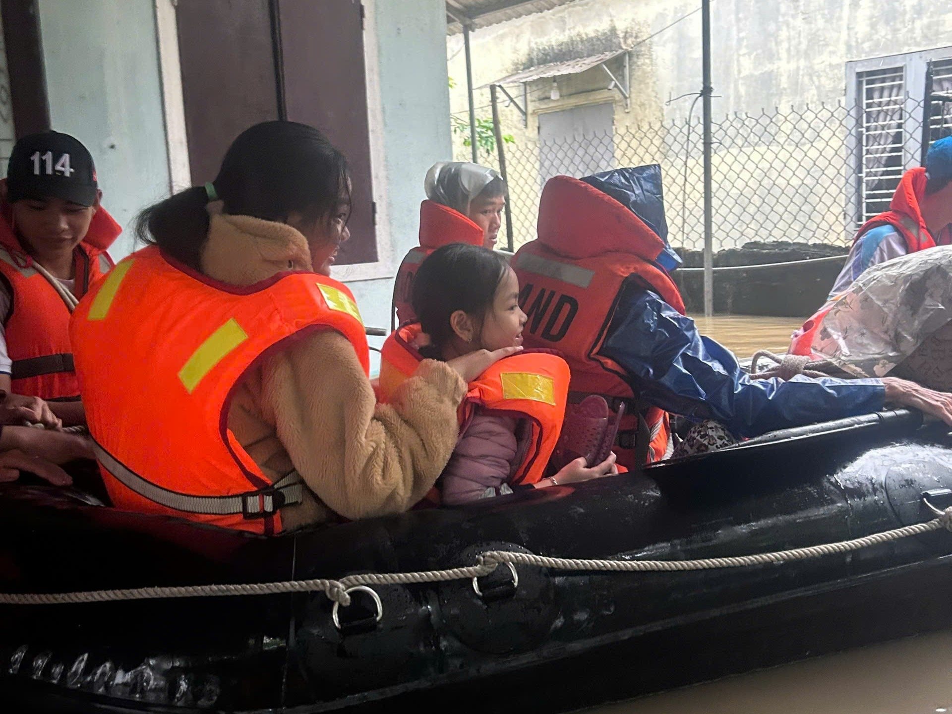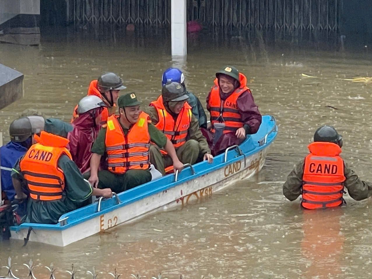Lực lượng chức năng nhanh chóng tiếp cận những nơi ngập sâu để giúp đỡ người dân