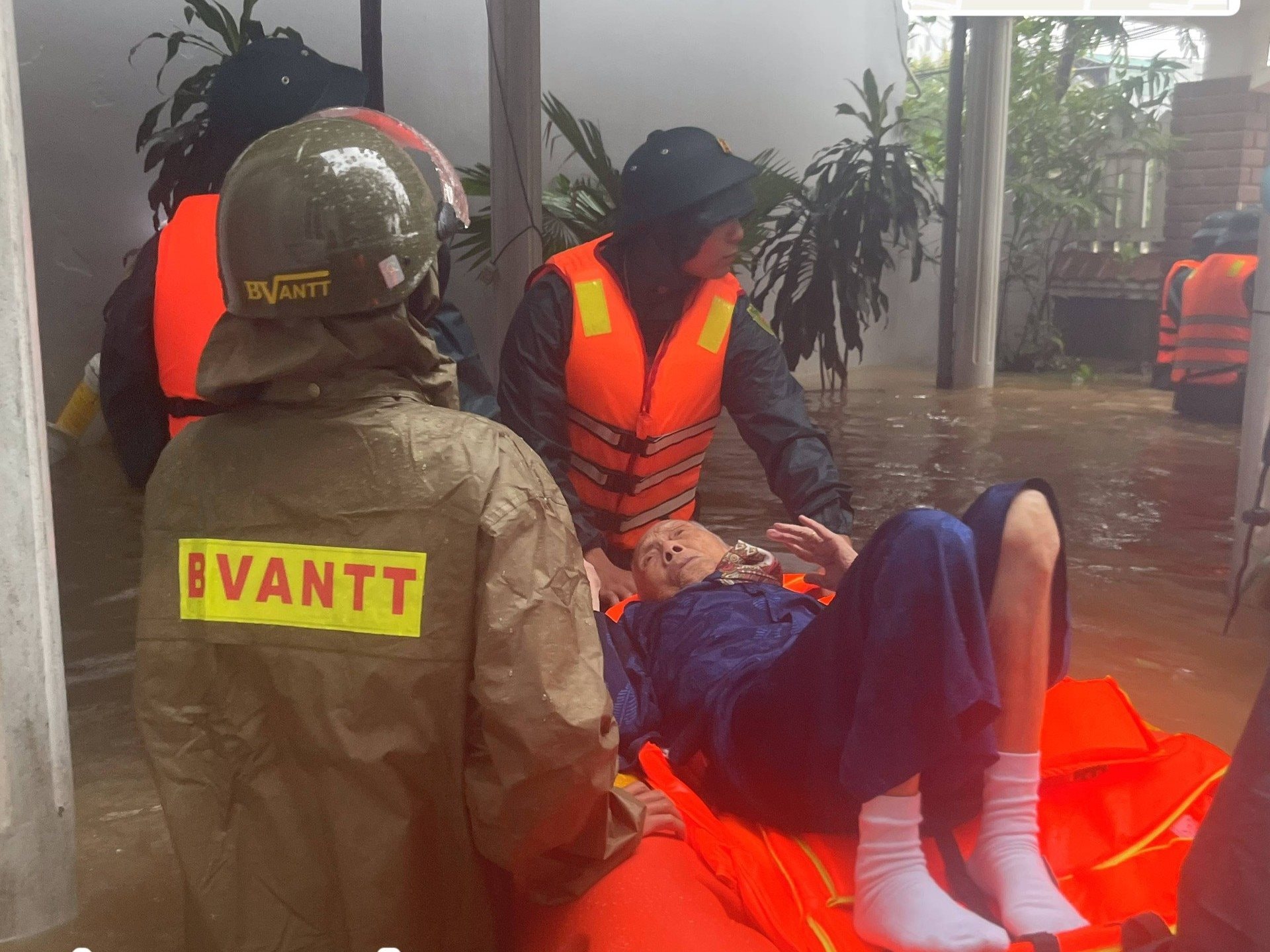 Công an phường An Cựu đã hỗ trợ đưa cụ bà 92 tuổi ra khỏi khu vực ngập sâu