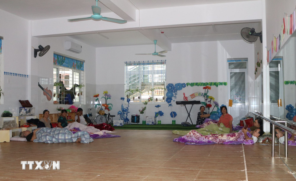 Người dân vùng ngập lụt được sơ tán đến nơi an toàn. (Ảnh: Chu Hiệu/TTXVN)