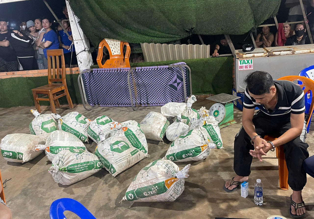 Qua đấu tranh của lực lượng chức năng, P.V.H giao nộp thêm 1 bao tải khác có trọng lượng 20 kg (đang cất giấu) có đặc điểm giống như bao tải mà người này đang chở trên xe mô tô. Tổ công tác đã lập biên bản bắt người phạm tội quả tang đối với P.V.H; lập biên bản tạm giữ tài sản, đồ vật, tài liệu để xử lý theo quy định.