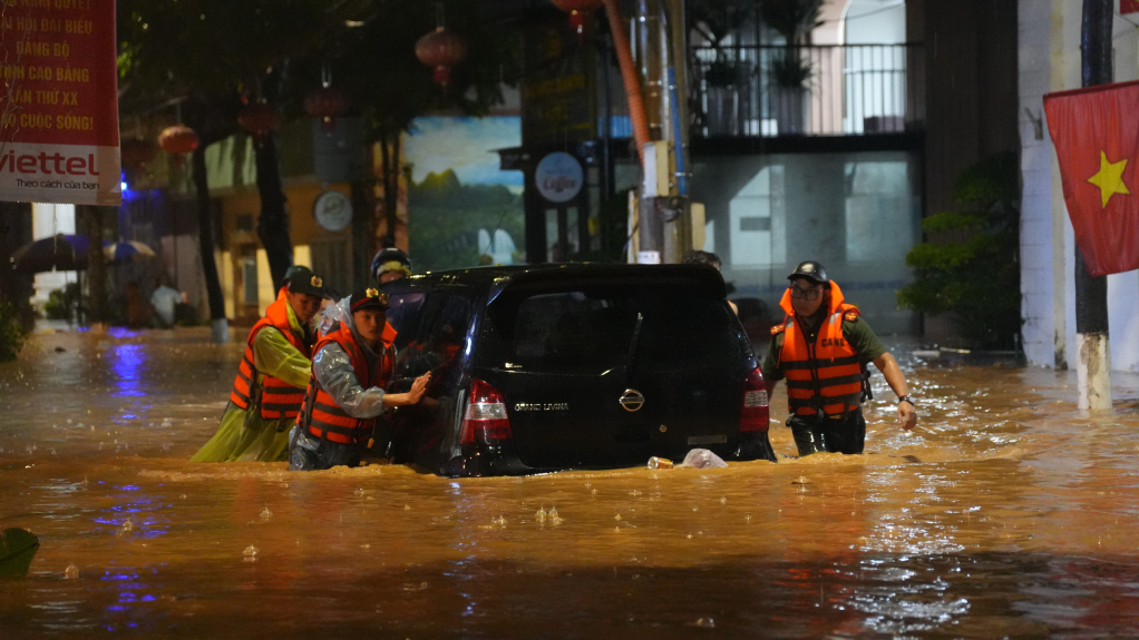 Trước diễn biến phức tạp của hoàn lưu bão số 10, lũ trên các sông dâng cao gây ngập sâu tại nhiều khu vực, ngay trong đêm 30/9, Đại tá Nguyễn Quang Vinh, Ủy viên Ban Thường vụ Tỉnh ủy, Giám đốc Công an tỉnh, Phó Trưởng ban Chỉ huy Phòng thủ dân sự tỉnh đã trực tiếp có mặt tại phường Thục Phán để kiểm tra tình hình mưa lũ, động viên cán bộ, chiến sĩ đang thực hiện công tác cứu nạn, cứu hộ, di dời nhân dân ra khỏi vùng nguy hiểm.