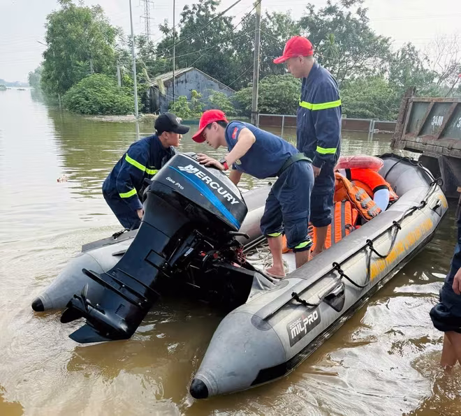 Lực lượng CNCH - CATP Hà Nội đưa phương tiện chuyên dụng vào vùng lũ hỗ trợ đưa người dân đến nơi an toàn