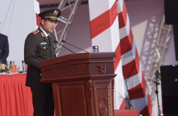 Thiếu tướng Nguyễn Quốc Toản, Chánh Văn phòng Bộ Công an phát biểu tại buổi lễ.