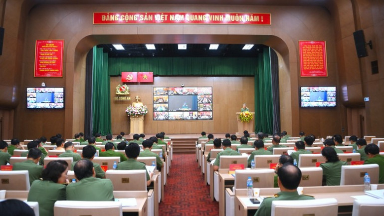 Hội nghị sơ kết công tác công an quý III và 9 tháng đầu năm 2025 tổ chức theo hình thức trực tuyến. (Ảnh: PHAN ANH)