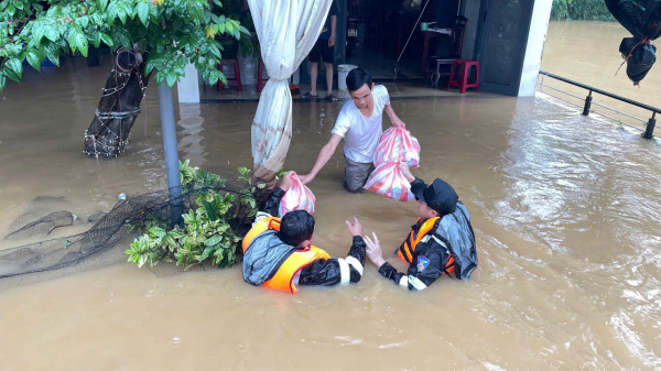 800 suất quà gồm mì, sữa, nước uống, thuốc men và các nhu yếu phẩm cần thiết của Bệnh viện 199 và Đoàn Cảnh sát đặc nhiệm số 3 đã kịp đến với người dân vùng ngập lũ Hòa Tiến; Hòa Vang; Cẩm Lệ; Bà Nà trong chiều 30/10.