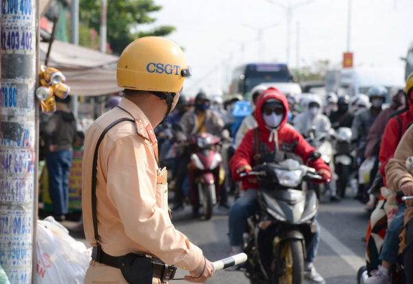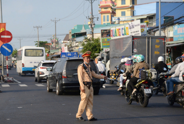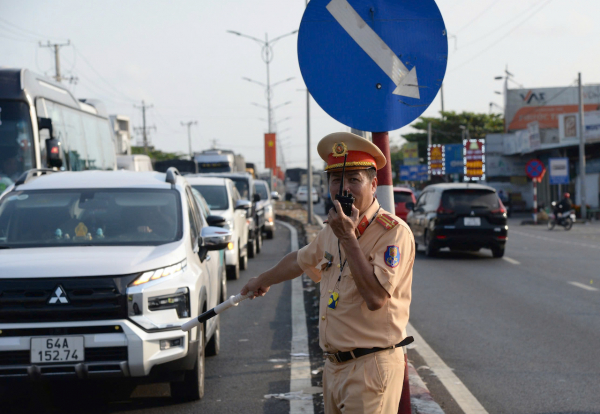 Lưu lượng phương tiện tăng đột biến và đồng loạt đổ về hướng TP Hồ Chí Minh nên áp lực giao thông rất lớn. Qua bộ đàm, cán bộ, chiến sĩ CSGT liên tục cập nhật tình hình ùn tắc trên Quốc lộ 1 để kịp thời điều tiết phương tiện lưu thông. Tại các nút như ngã tư Vang Cang, ngã tư Lương Phú, ngã tư Đồng Tâm, Phòng CSGT đều bố trí cán bộ, chiến sĩ điều tiết xuyên suốt.