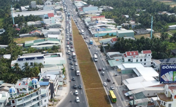 Dòng phương tiện nối đuôi trên Quốc lộ 1.