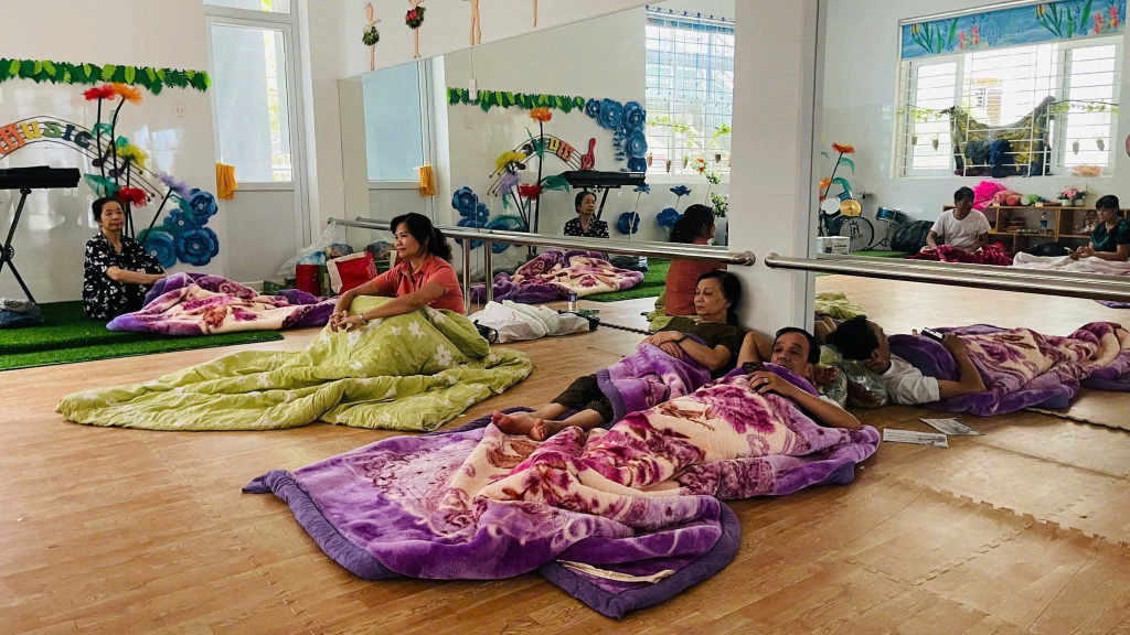 Nhiều người dân phường Thục Phán được di dời đến nơi tránh trú.