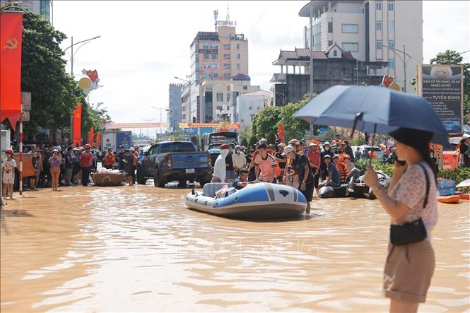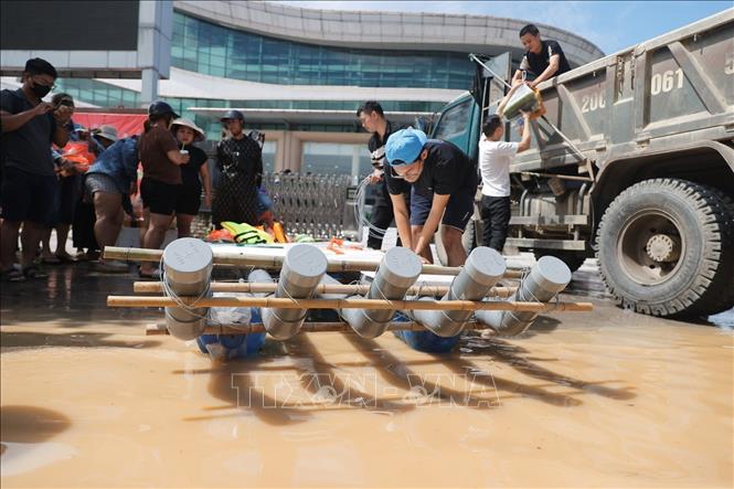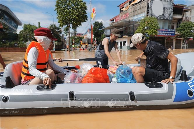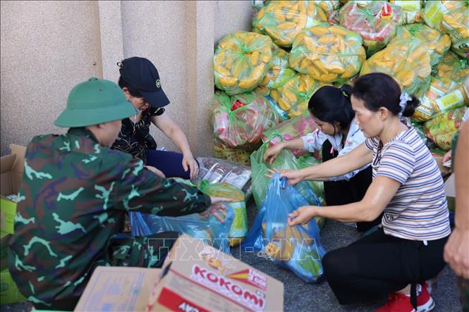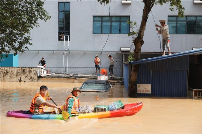 Lực lượng cứu trợ từ khắp nơi tập trung về Thái Nguyên giúp dân khắc phục hậu quả bão lũ. Ảnh: Minh Quyết/TTXVN