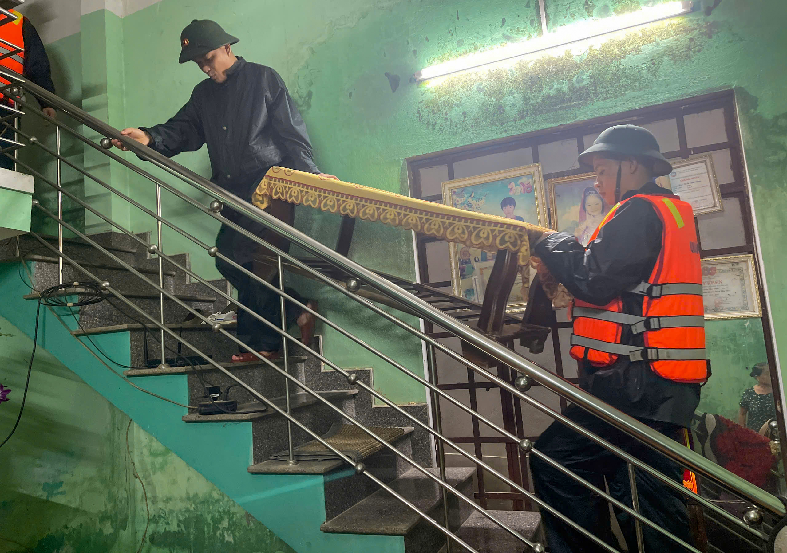 Những tài sản quan trọng được các cán bộ, chiến sĩ hỗ trợ đưa đến nơi cao ráo.