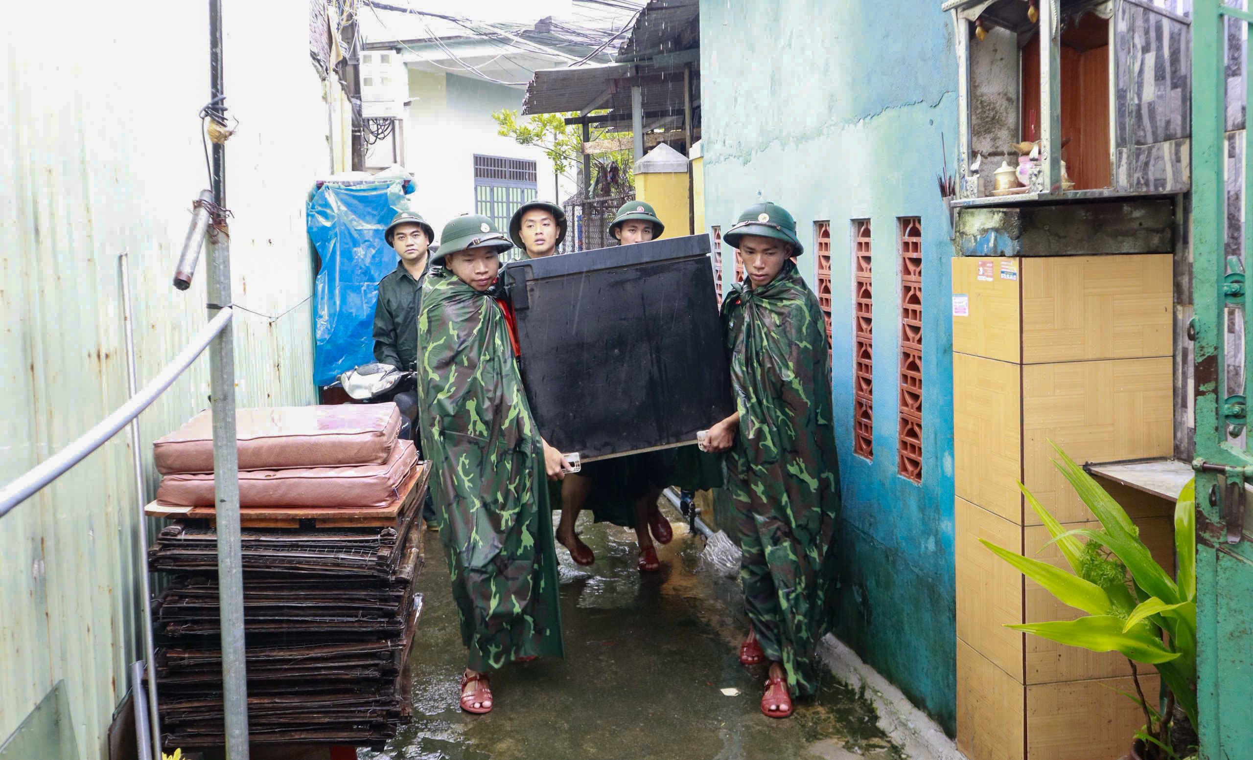 Mưa lớn tiếp diễn trong ngày 27/10, tại phố cổ Hội An nước lên nhanh khiến nhiều người dân, du khách bị mắc kẹt. Bộ Chỉ huy quân sự TP Đà Nẵng đã huy động cán bộ, chiến sĩ tham gia hỗ trợ sơ tán người dân và du khách đến nơi cao ráo, tránh lũ.