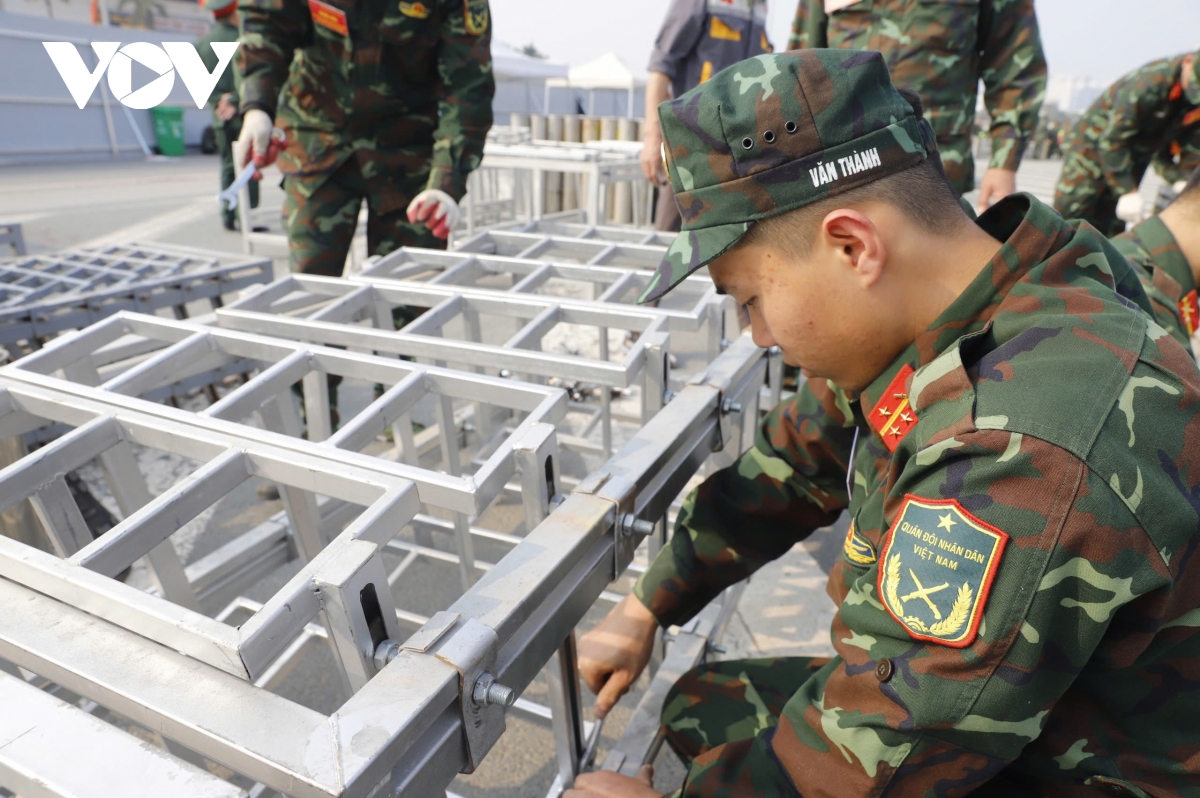 Tại hiện trường, theo ghi nhận của phóng viên, các giàn ống phóng pháo hoa tầm cao, khung giá đỡ... được xe tải vận chuyển đến đây từ ngày 11/1.