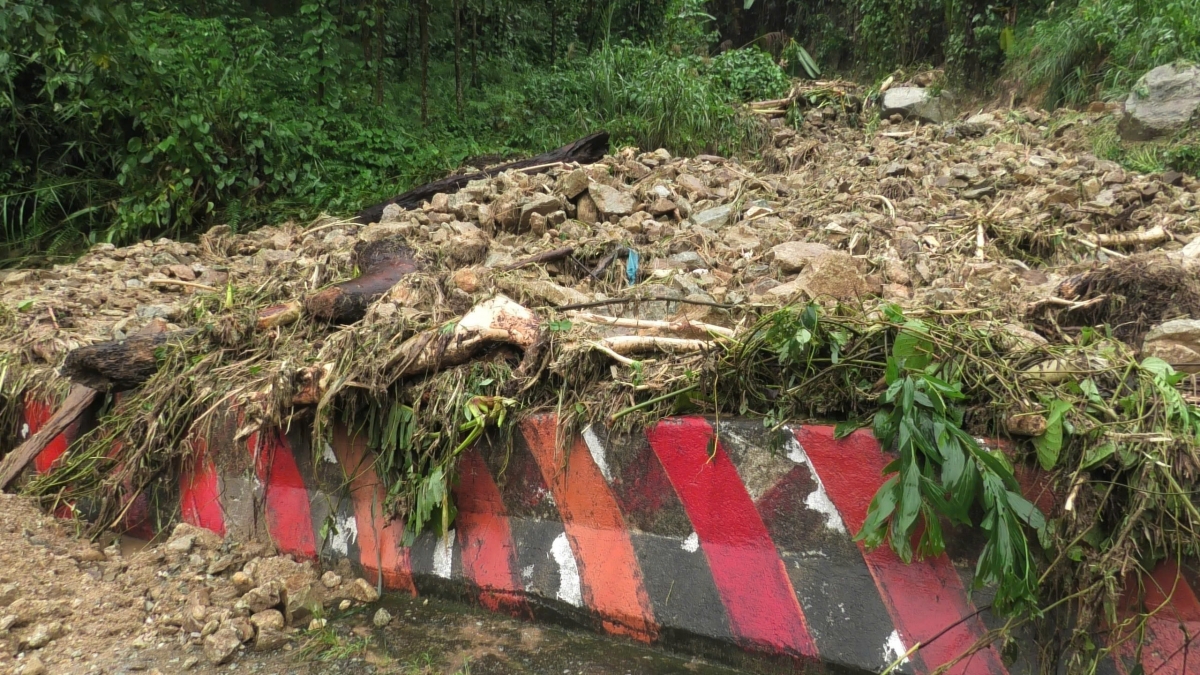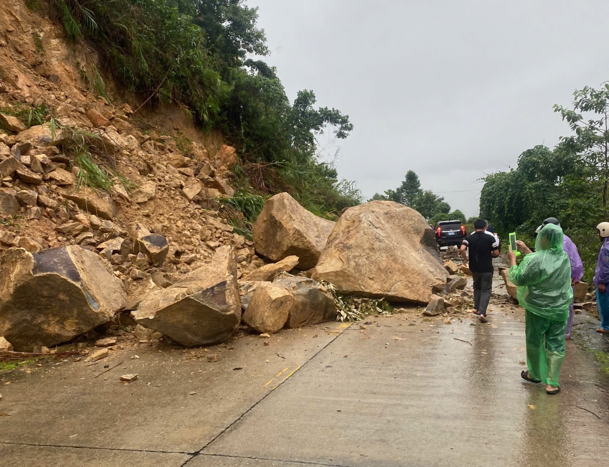 Đoạn đường qua thôn Gò Lã, xã Sơn Tây thuộc đường Đông Trường Sơn xảy ra 1 điểm sạt lở, làm đất, đá tràn xuống đường, với khối lượng ước khoảng 50m3.