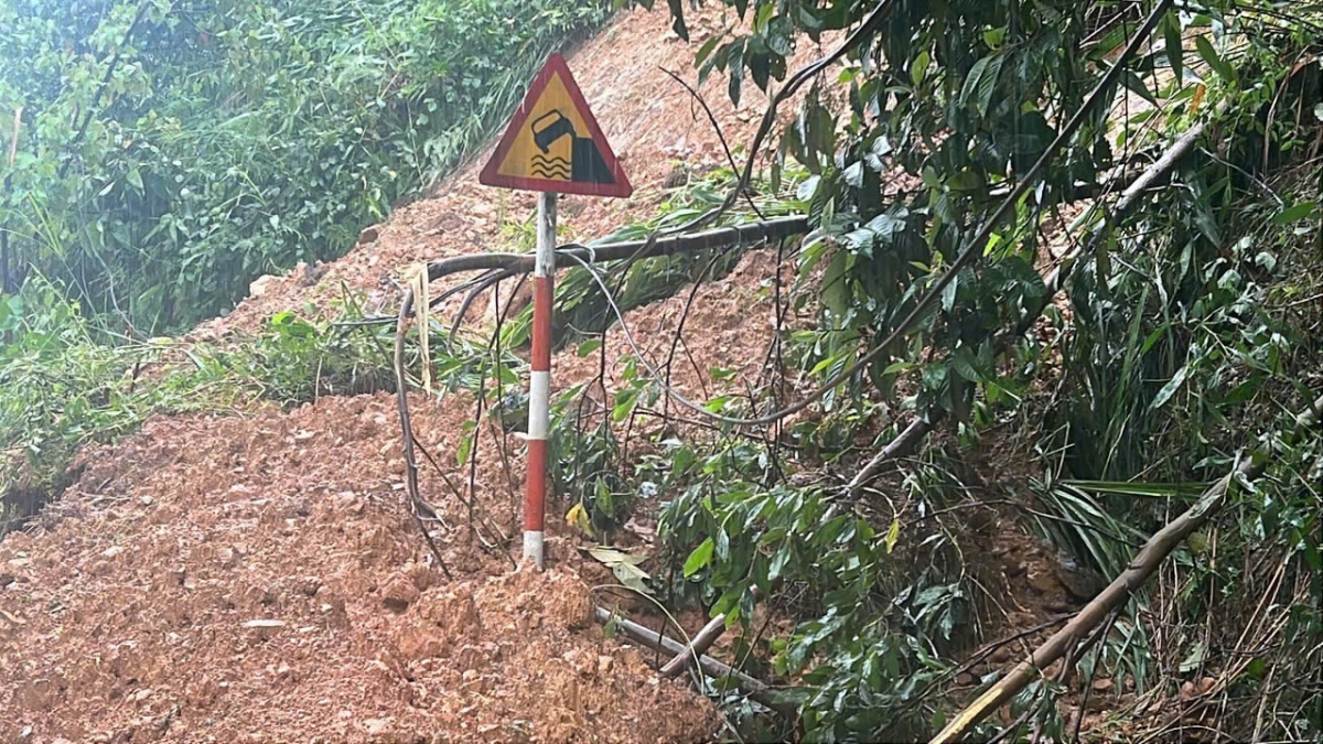 Chính quyền địa phương cắm biển báo cảnh báo khu vực sạt lở.
