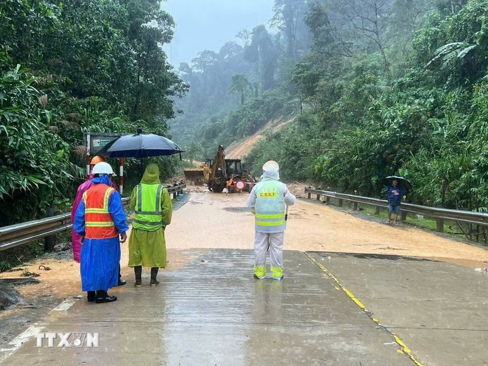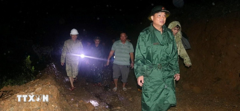 Đoàn công tác của Quân khu 5 kiểm tra một số vị trí sạt lở trên địa bàn thành phố Đà Nẵng. (Ảnh: TTXVN phát)
