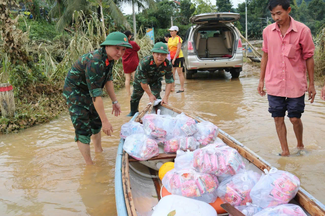 Băng rừng đưa nhu yếu phẩm đến với bà con vùng lũ còn bị ảnh hưởng nặng nề.