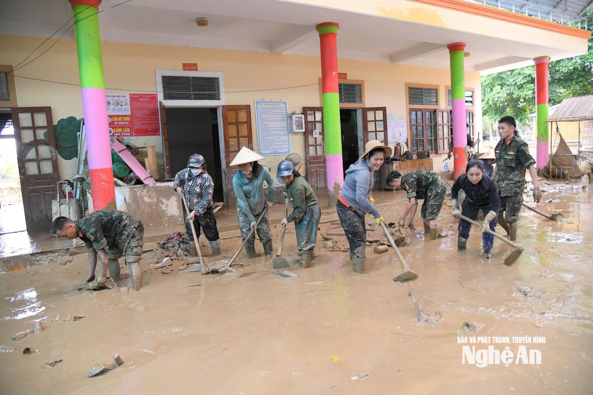 LLVT Quân khu 4 giúp xã Tương Dương khắc phục hậu quả bão, lụt. Ảnh: Ngọc Thăng