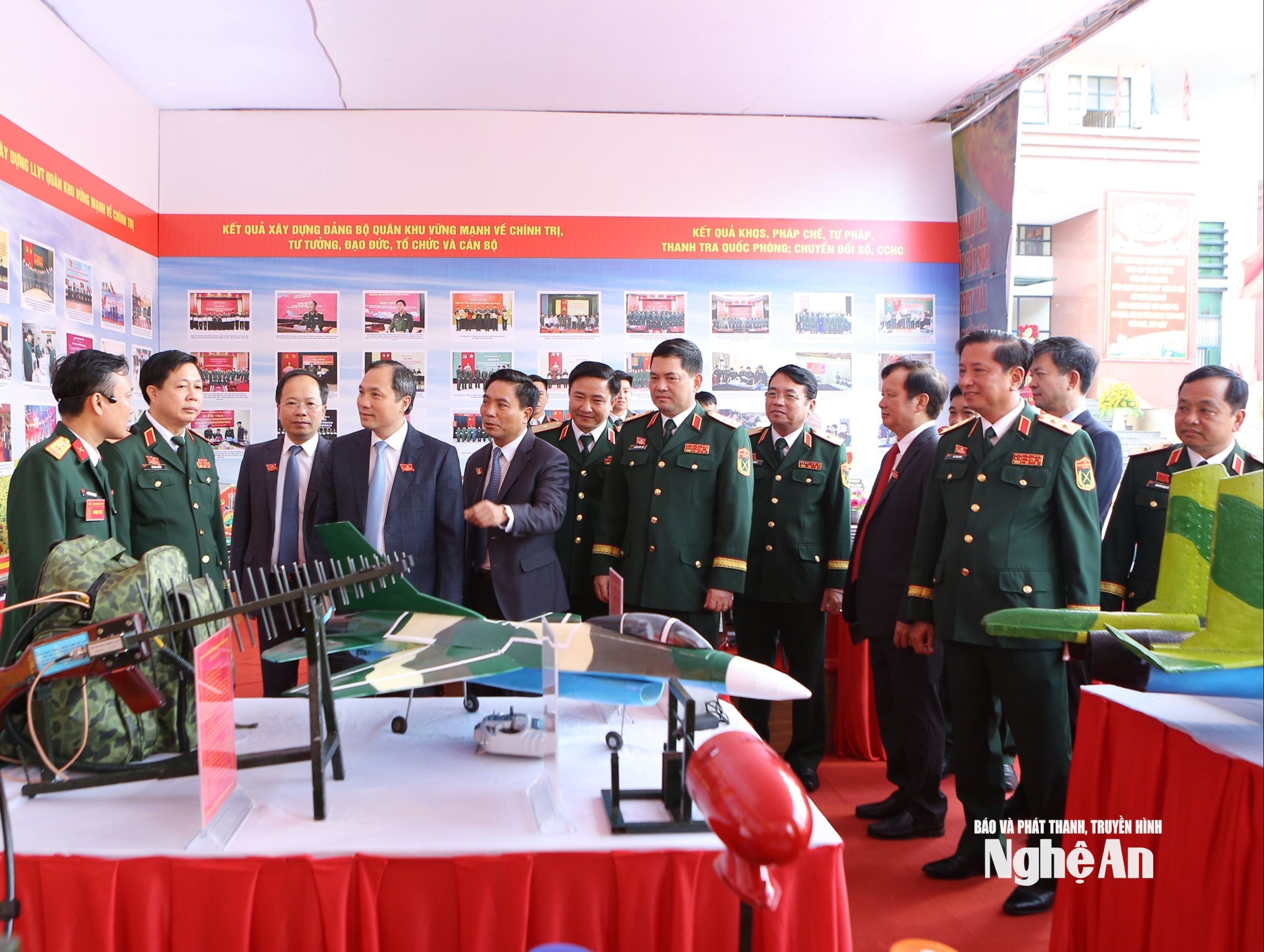 Các đại biểu tham quan trưng bày tại Lễ kỷ niệm 80 năm ngày truyền thống Quân khu 4. Ảnh: Ngọc Thăng