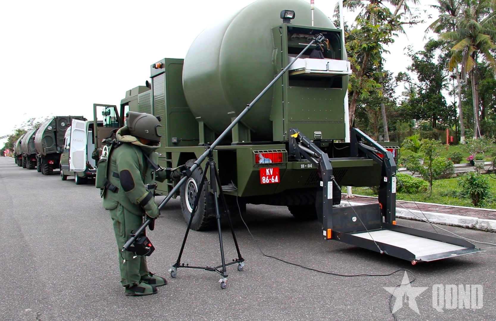 Nhiều phương tiện, khí tài đặc chủng được Lữ đoàn Công binh 270 triển khai, sẵn sàng xử lý hiệu quả tình huống.