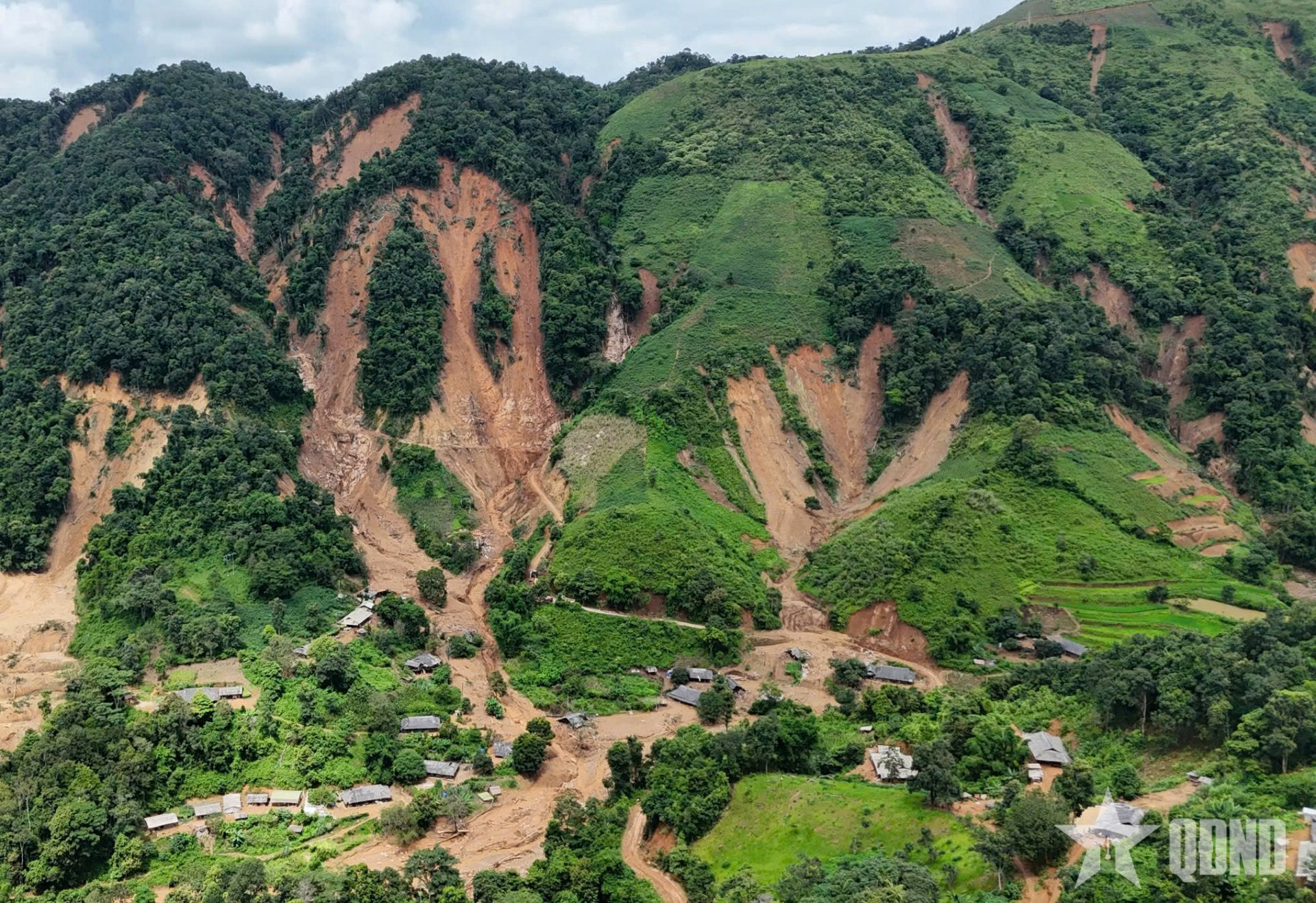 Những vết trượt lớn trên núi phía sau bản Háng Pu Xi, xã Xa Dung, tỉnh Điện Biên năm 2025.