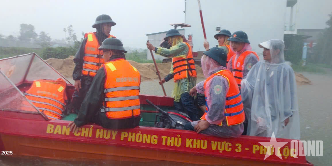 Sáng 27-10, Bộ CHQS thành phố Huế tiếp tục chỉ đạo các đơn vị huy động lực lượng đến các địa bàn thấp trũng để hỗ trợ nhân dân. Đặc biệt, Ban chỉ huy Phòng thủ khu vực 3 - Phú Lộc phối hợp với lực lượng y tế xã Lộc An kịp thời tiếp cận, ứng cứu một sản phụ và một trẻ sơ sinh (ở thôn Quê Chữ, xã Lộc An) đến nơi an toàn.