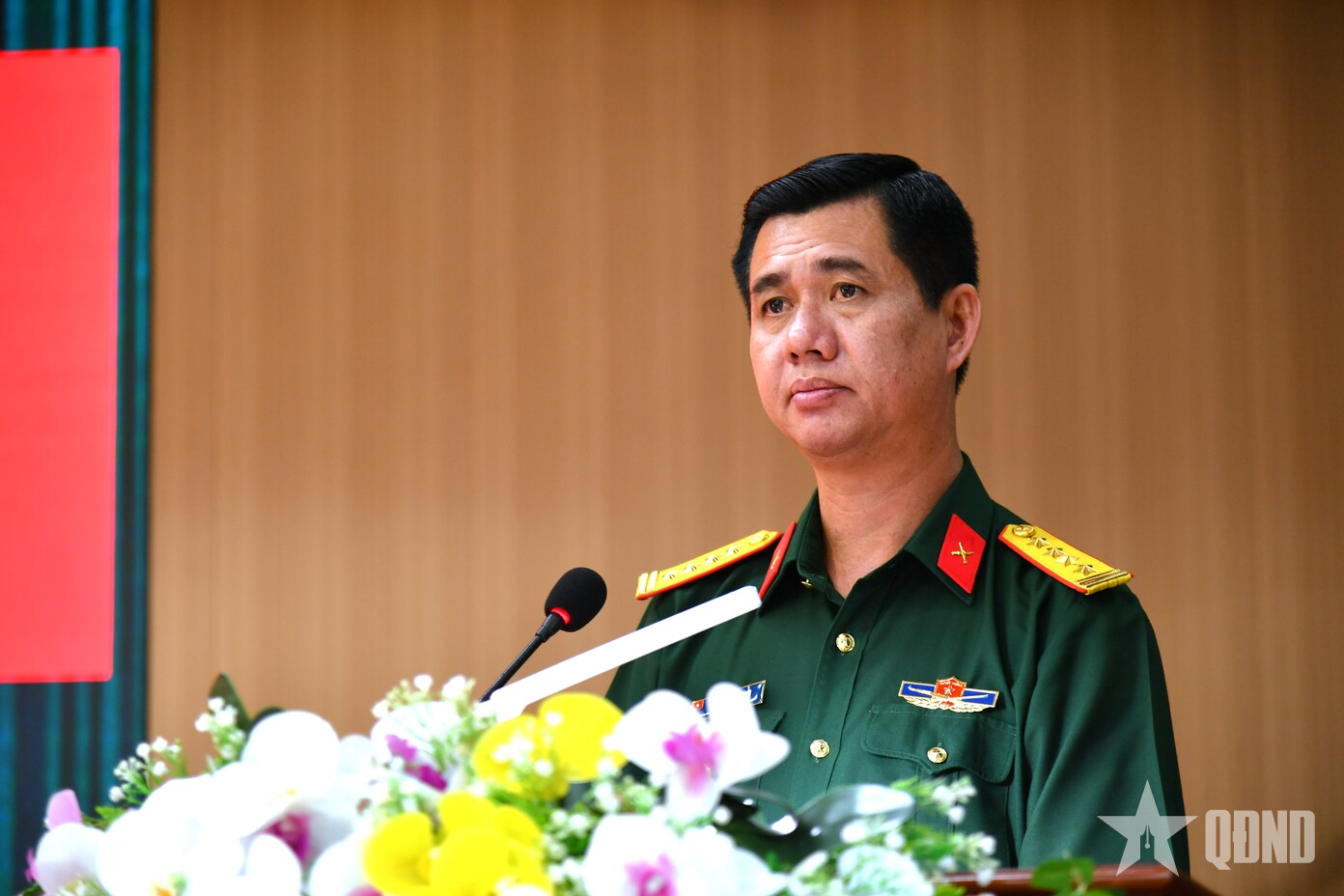 Đại tá Huỳnh Văn Khởi, Chính ủy Bộ CHQS tỉnh An Giang phát động thi đua.