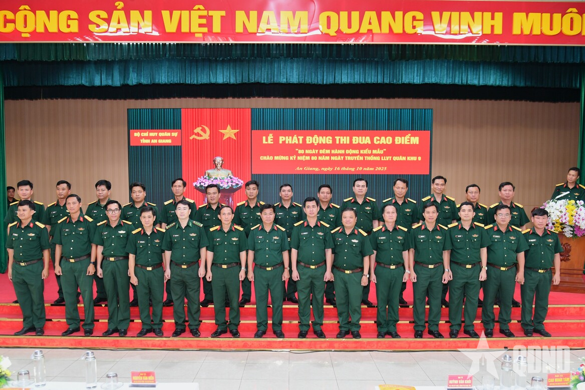 Với chủ đề “80 ngày đêm hành động kiểu mẫu”, Đại tá Huỳnh Văn Khởi, Chính ủy Bộ CHQS tỉnh An Giang thay mặt Đảng ủy, Bộ CHQS tỉnh và Hội đồng thi đua, khen thưởng LLVT tỉnh đã phát động đến từng tập thể, cá nhân trong cơ quan Bộ CHQS tỉnh thi đua thực hiện các nội dung sau: Tập trung tuyên truyền, giáo dục truyền thống lịch sử, văn hóa, sự đóng góp to lớn của quân dân Quân khu 9 trong suốt chặng đường 80 năm xây dựng, chiến đấu và trưởng thành; đẩy mạnh các hoạt động thông tin tuyên truyền, lan tỏa hình ảnh cao đẹp Bộ đội Cụ Hồ trong thời kỳ mới; tập trung thi đua hoàn thành kế hoạch, chương trình huấn luyện năm 2025, 100% đạt yêu cầu, có 75% trở lên đạt khá giỏi.