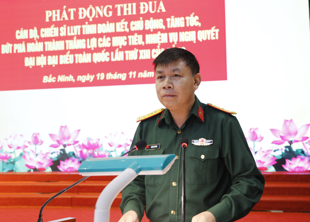 Tổ chức tốt việc học tập, quán triệt nâng cao nhận thức, trách nhiệm, thống nhất về ý chí và hành động, để thi đua trở thành đợt sinh hoạt chính trị sôi nổi, rộng khắp, “muôn người như một”, đồng lòng nhất trí, quyết tâm thực hiện thắng lợi Nghị quyết Đại hội Đảng bộ Quân sự tỉnh lần thứ XVIII, Nghị quyết Đại hội Đảng bộ Quân đội lần thứ XII, Nghị quyết Đại hội đại biểu Đảng bộ Quân khu lần thứ XVI và Nghị quyết Đại hội Đảng bộ tỉnh Bắc Ninh lần thứ I nhiệm kỳ 2025 - 2030.