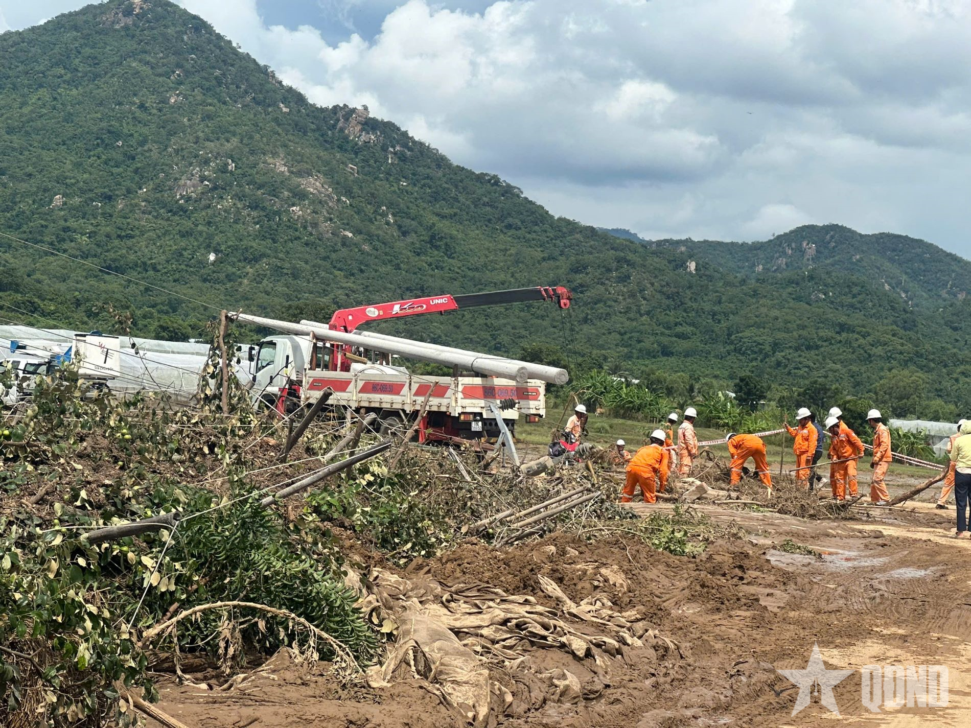 Khôi phục lại hệ thống điện bị hư hại do mưa lũ.