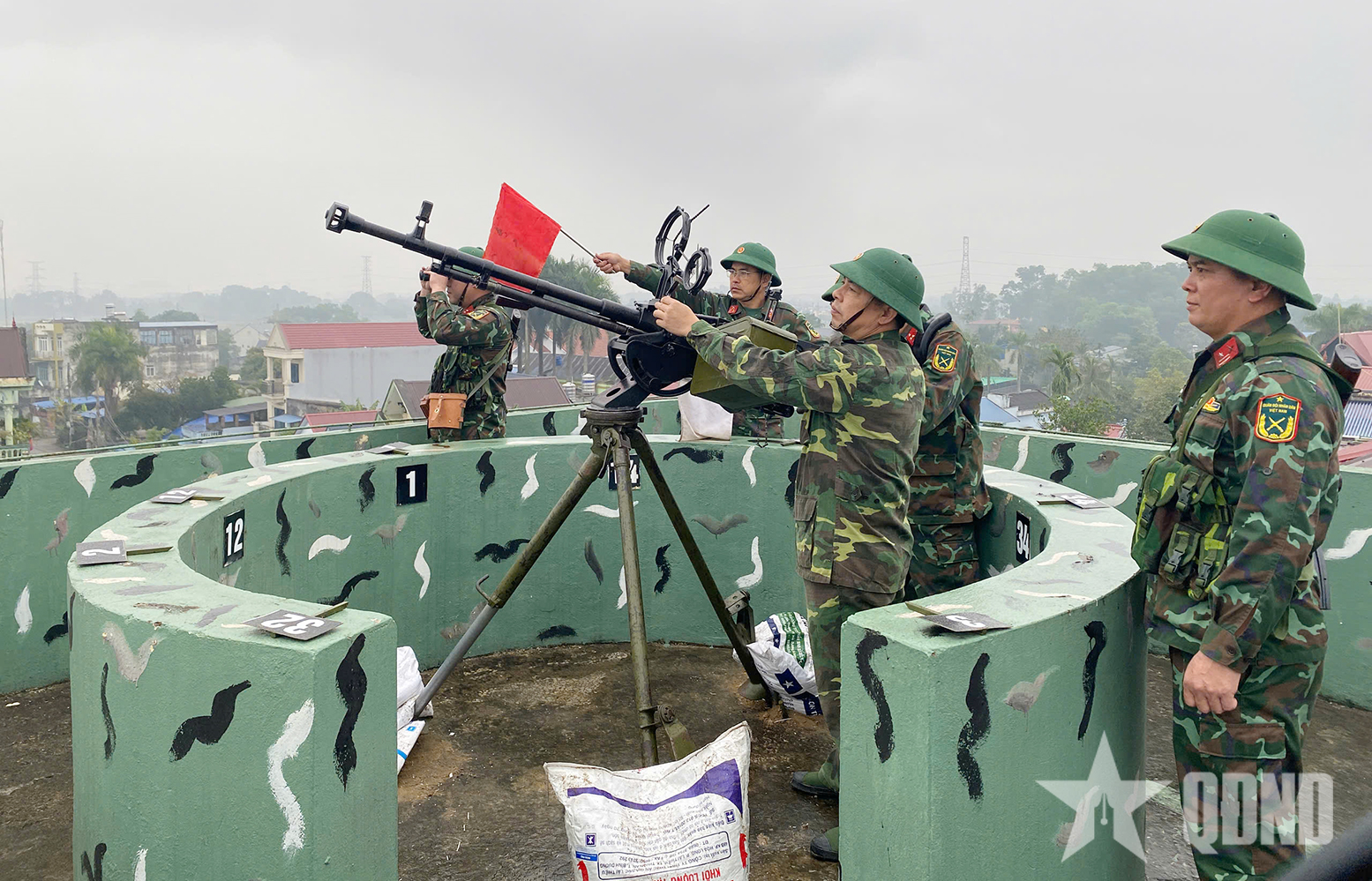 Khẩu đội súng máy phòng không kiêm nhiệm Ban chỉ huy Phòng thủ khu vực 3 - Sông Công tăng cường luyện tập các phương án.