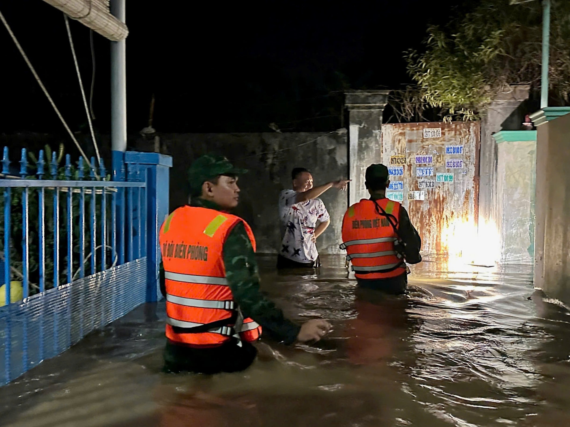 Tại nhiều địa phương ven biển, các điểm ngập mới liên tục xuất hiện. Lực lượng chức năng tổ chức trực 24/24 tại các khu dân cư, giúp bà con di chuyển tài sản, đưa người già và trẻ nhỏ đến nơi an toàn.