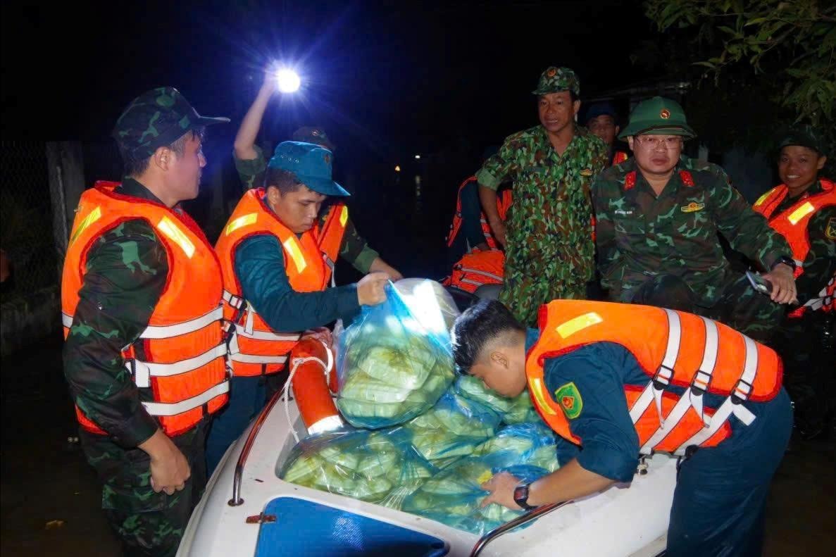 Trong điều kiện đêm tối, mất điện, nước lũ dâng nhanh, lực lượng làm nhiệm vụ vẫn kiên trì bám địa bàn, sử dụng ca nô và các phương tiện chuyên dụng tiếp cận những khu vực bị cô lập, đưa lương thực, nước uống đến từng hộ dân và đưa người già, trẻ nhỏ đến nơi an toàn.