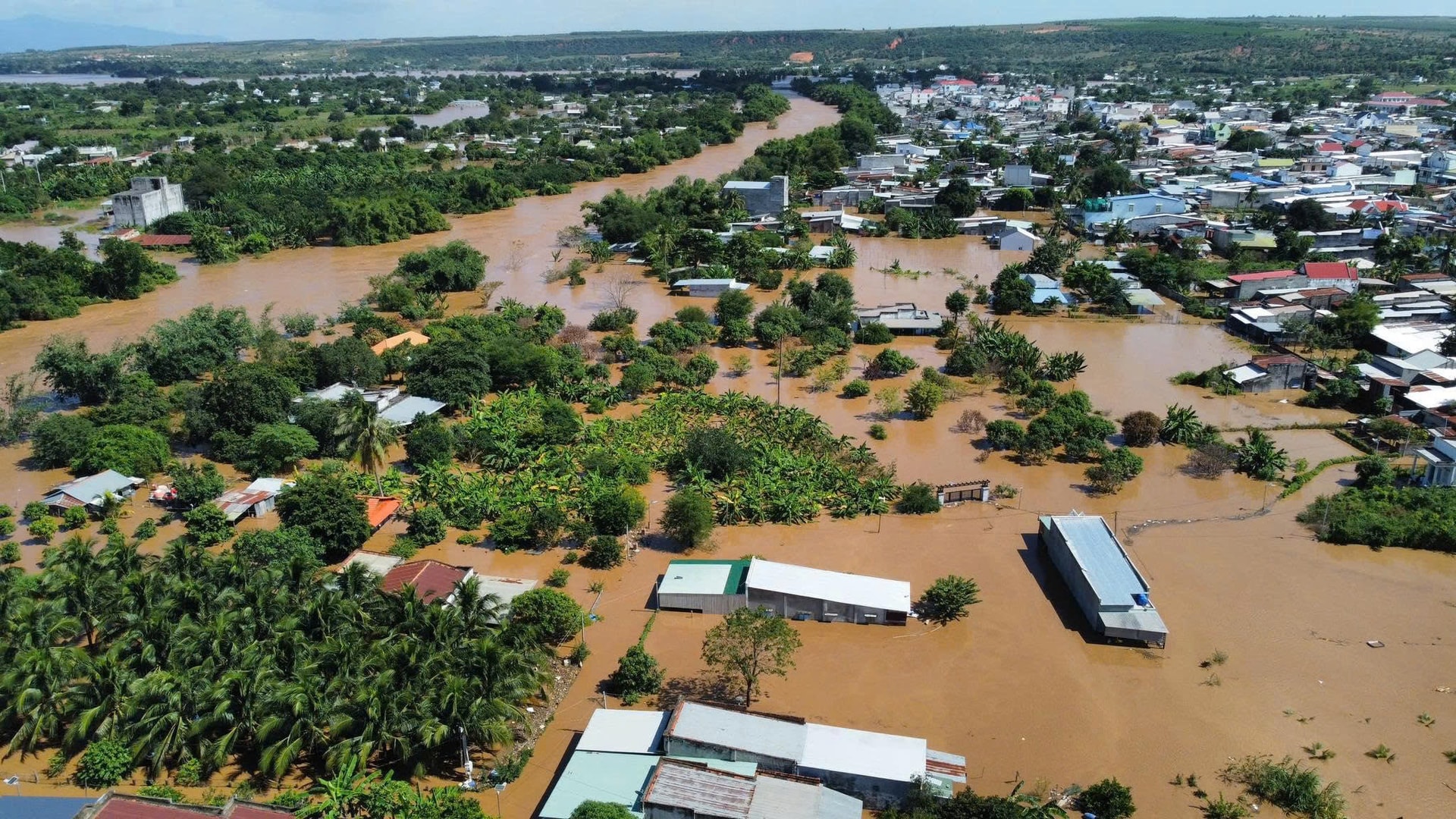Tình hình ngập lụt sáng nay (5/12) tại xã Hàm Thắng