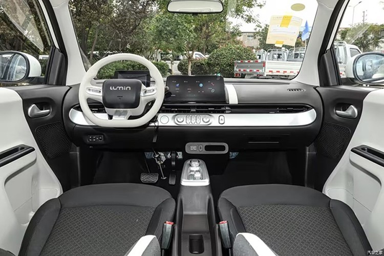 Nội thất xe được phối hai tông màu đen - trắng, tạo nên không gian trẻ trung và thanh lịch. Màn hình trung tâm được nâng cấp với giao diện mới, hỗ trợ điều khiển bằng giọng nói, kết nối điện thoại thông minh và dẫn đường theo làn đường - những tính năng hiếm thấy trên các mẫu xe điện mini giá rẻ.