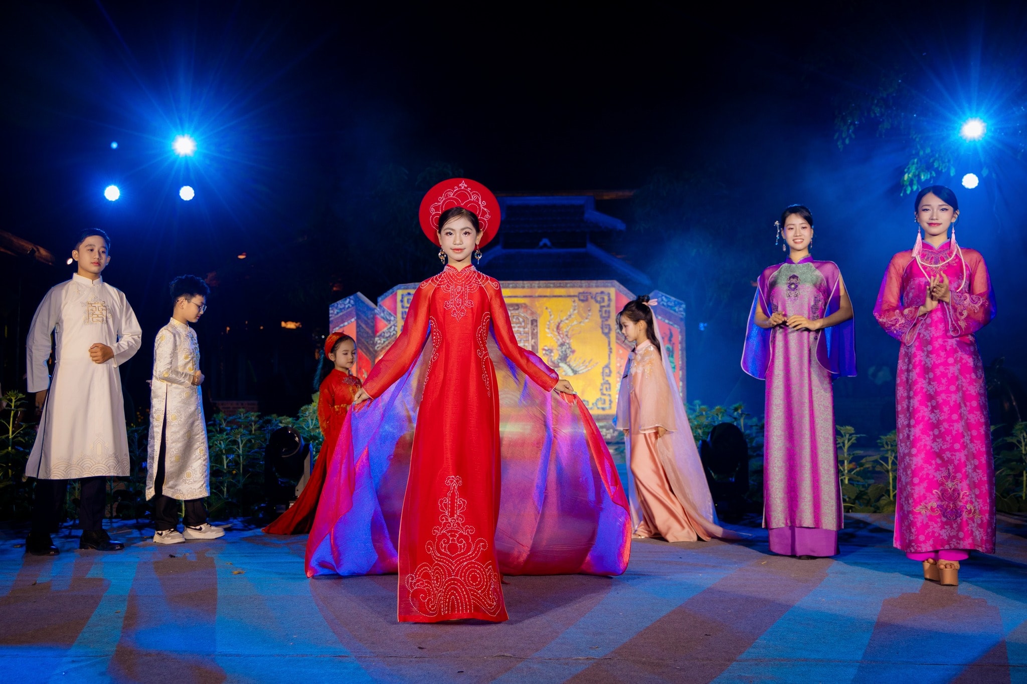 Trình diễn áo dài trong lễ khai mạc chương trình “Hoàng cung huyền ảo”. Nguồn: CTTĐT Huế